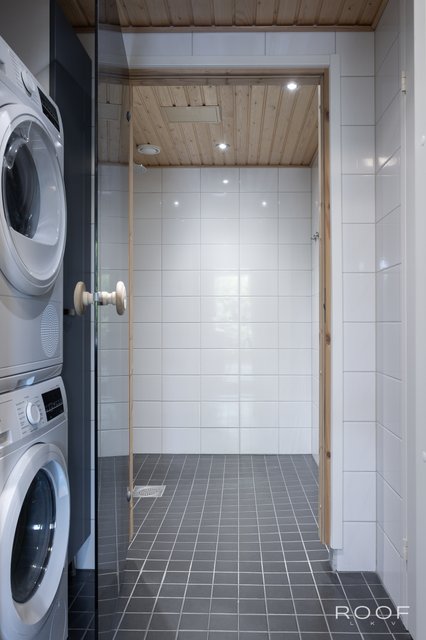 - Asunnossa on kaksi kylpyhuonetta, yksi molemmissa kerroksissa. Alakerran kylpyhuone: sadesuihku, lattialämmitys, pesukoneliitäntä, kaapisto. Käynti saunaan. Koko tila on laatoitettu. Yläkerran kylpyhuone: suihku, suihkuseinä, wc-istuin, bidee-suihku, allaskaapisto, pyykkikaapit, valopeili, lattialämmitys. Koko tila on laatoitettu.