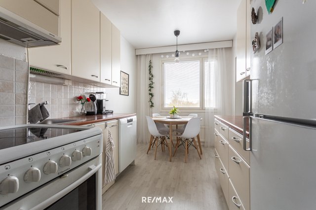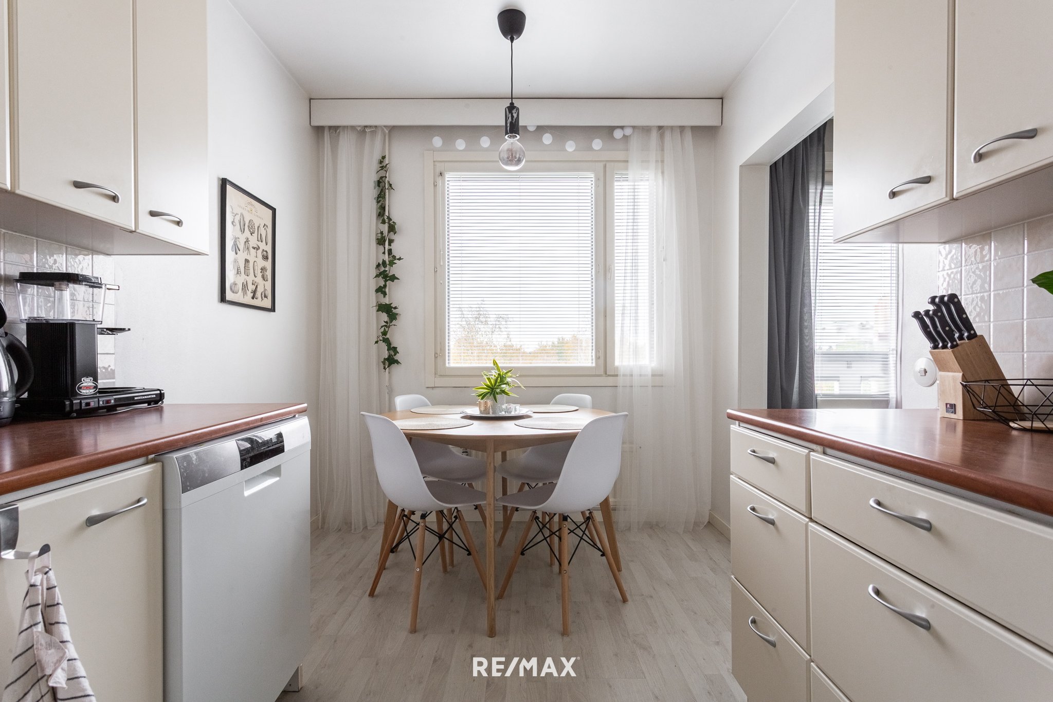 Asunnon 51,5 neliötä on jaettu käytännöllisesti, ja tilava lasitettu parveke tarjoaa lisätilaa rentoutumiseen. Keittiö on varusteltu nykyaikaisilla kodinkoneilla, kuten astianpesukoneella ja keraamisella liedellä. Makuuhuoneen seinät on tapetoitu ja asunnon lattiat ovat laminaattia, mikä tuo lämpöä ja kodikkuutta.