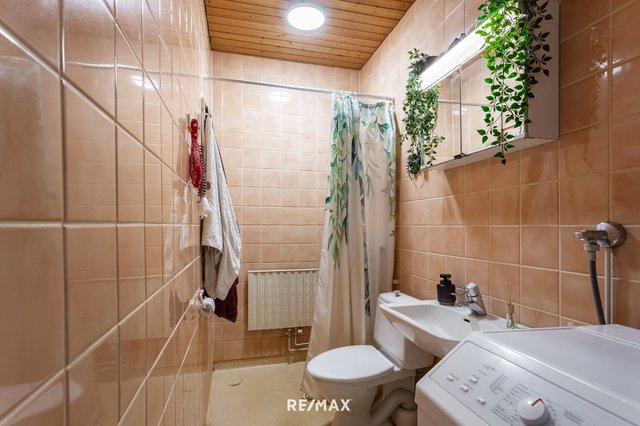 - WC-istuin, suihku, pesukoneliitäntä, peilikaappi, ja pesuallas