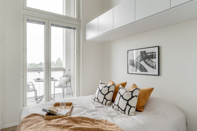 - Edustava ja valoisa makuuhuone jossa runsaasti säilytystilaa
