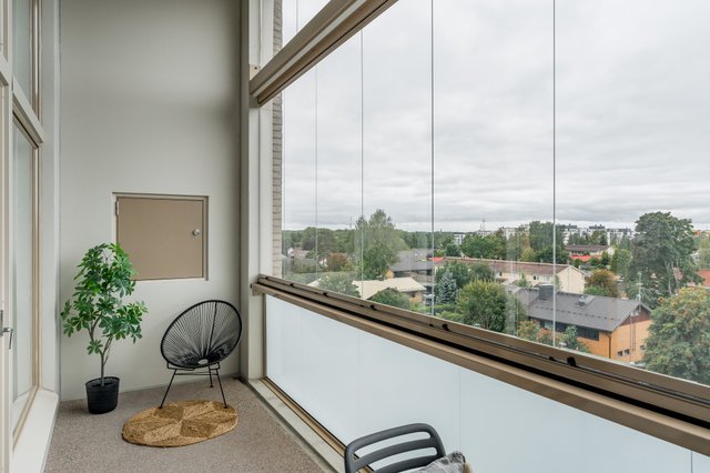Asunnon kruunaa suuri, lasitettu 11 m² parveke, jolta avautuu näkymät länteen yli naapuritalojen kattojen, mikä täydellinen paikka nauttia ilta-auringosta!