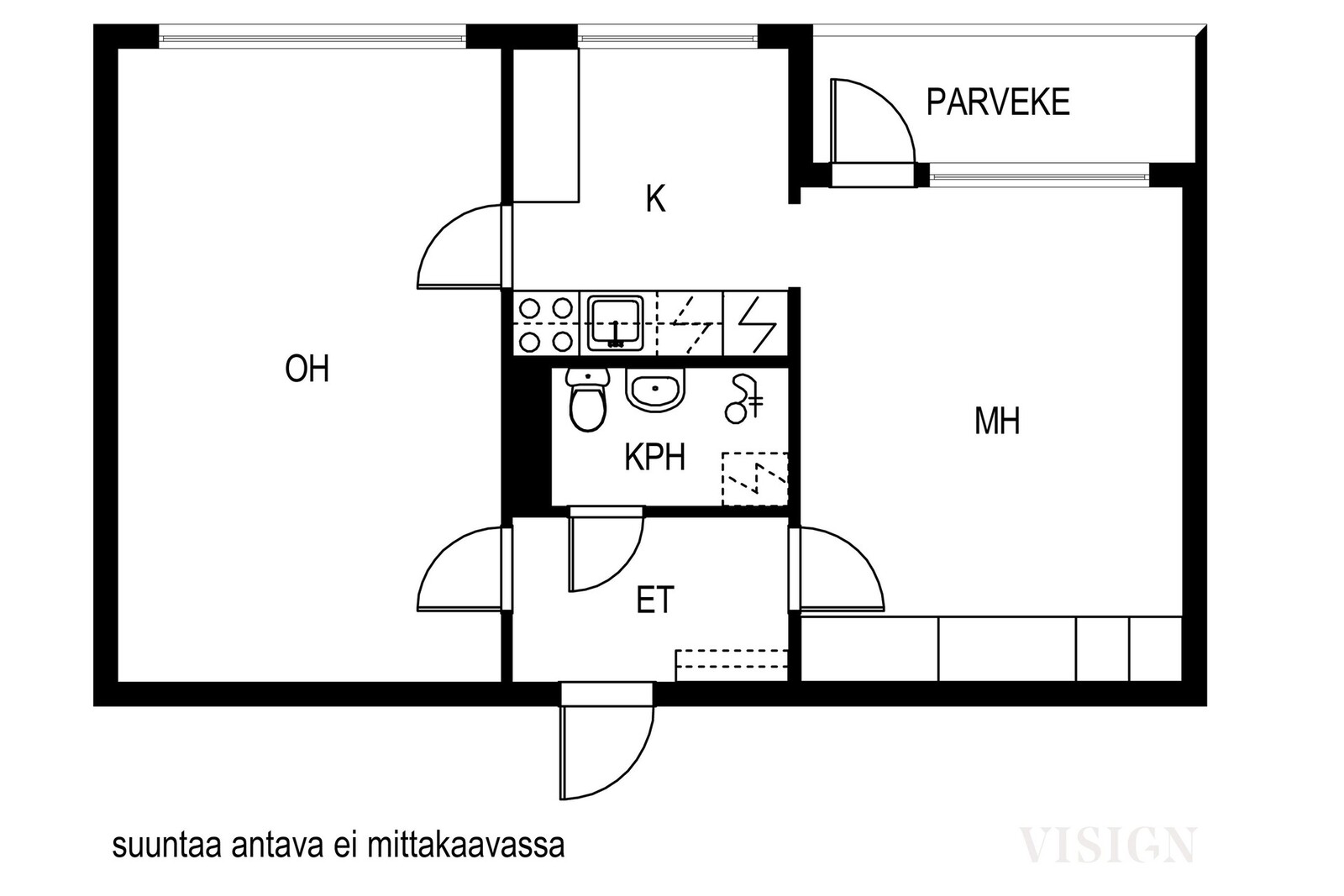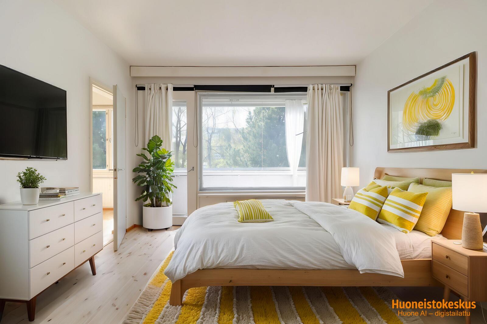 Valoisuuden ansiosta, sekä tilava makuuhuone, että olohuone on helppo sisustaa, ja kompaktiin keittiöön mahtuu hyvin ruokapöytäkin. Asunnosta löytyy tarvittaessa tilaa varmasti myös työsopelle ja kokonaisuuden kruunaa lasitettu parveke. Väljästi rakennettujen talojen vuoksi näkymä on mukavan puistomainen.