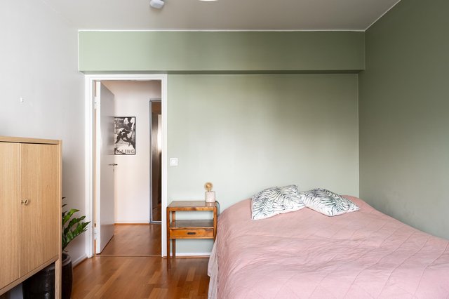 - Makuuhuoneen seinät maalattu, parkettilattia. Makuuhuoneen yhteydessä ikkunallinen vaatehuone.