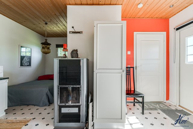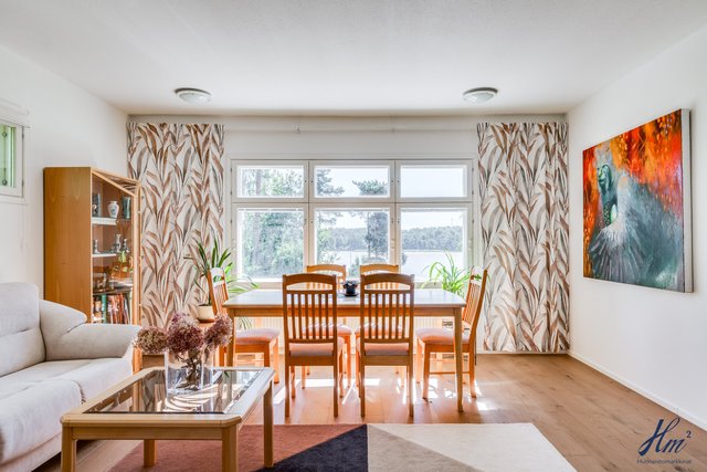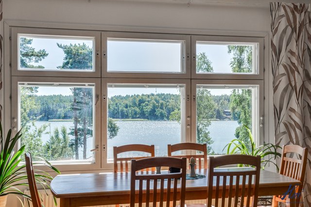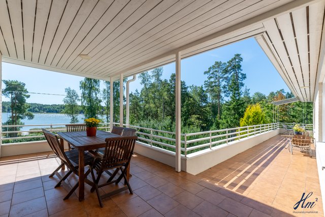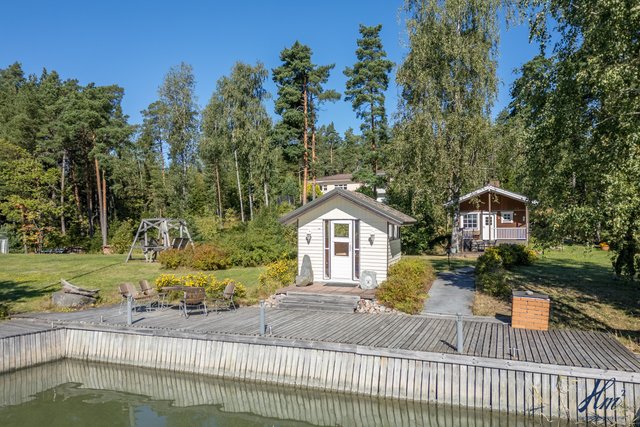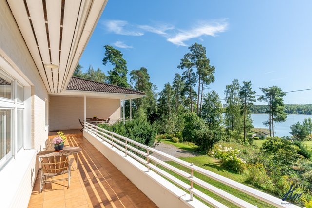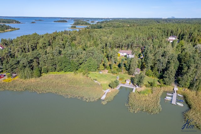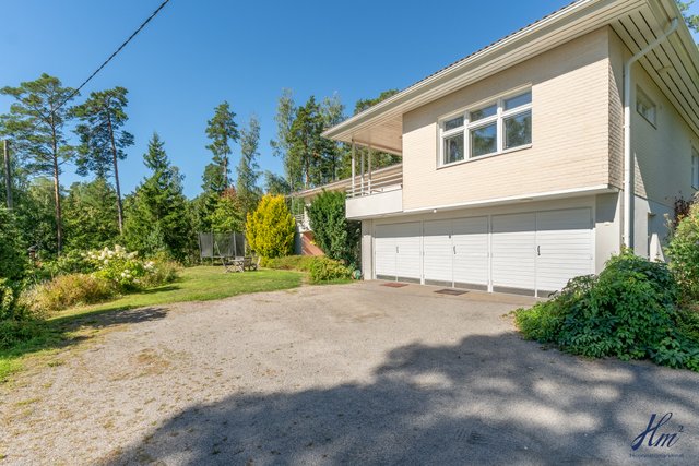 Tämä kiinteistö tarjoaa omistajalleen suuren ja yksityisen tontin sekä tilavan asuinrakennuksen. Asuinrakennus on toiminut valmistumisestaan saakka paritalona kahdelle perheelle ja siihen se tarjoaa hienon mahdollisuuden jatkossakin, mutta se on myös muokattavissa yhdeksi suureksi asunnokseen. Rakennus on valmistunut vuonna 1997 ja senkin jälkeen sitä on huollettu ja kunnostettu vastaamaan nykypäivän vaatimuksia. Asuintiloja löytyy niin asuinkerroksesta kuin myös kellarikerroksesta ja hienona lisänä mainittakoon suuri noin 66 m² lämmin autotalli. Asuinkerroksesta on myös käynti asuntoja yhdistävälle osittain katetulle parvekkeelle, josta kelpaa ihailla Haarlansalmen maisemia.