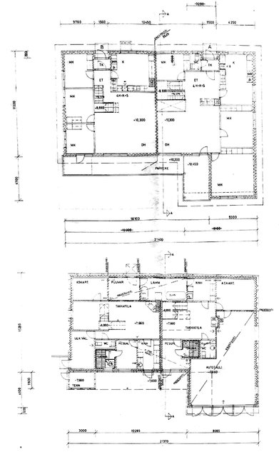 As1: 4h+k+ask.h.+kph+s+2xerill wc+khh+takkatila+at+varasto+kattilah., As2: 4h+k+takkatila+khh+kph+s+wc+3x varastoh.+puuvar.