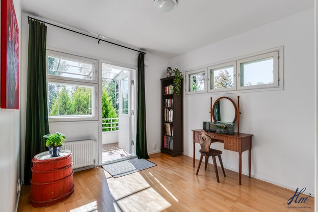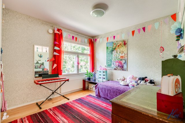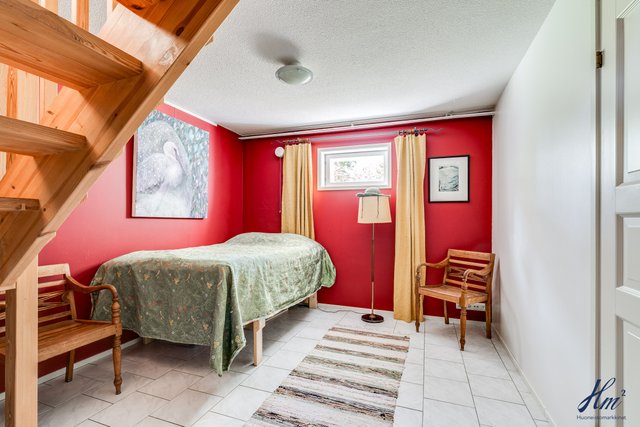 - Asunnossa 1 on yläkerrassa kolme makuuhuonetta, jonka lisäksi kellarikerroksessa on ikkunallinen askarteluhuone. Asunnossa 2 on yläkerrassa kolme makuuhuonetta ja kellarikerroksen isossa takkatilassa myös mahdollisuuksia sijoittaa tilaa yöpyjille.