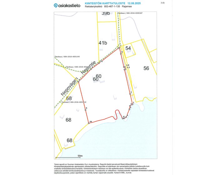 - - Umpisäiliön 5m3 ja saostuskaivojen tyhennys LSJHn taksan mukaan 2025: 231,17 €/kerta 6m3 tyhjennysmäärään asti (115,59 €/ as), (umpisäiliö tyhj. n. 4 krt vuosi/ käytön mukaan.) – Tiemaksu Nepontien yksityistie: 2026: 1545,31 € koko kiinteistö/ 772,66 €/as. (Tietä asfaltoitu ja kunnostettu, jonka vuoksi maksu ollut korkea.) - Kiinteistövero 2025: 599,17 €/as, 1198,34 €/ koko kiinteistö, sis. 16255 m2 maapohjan (sis. myös 5600 m2, rakentamattoman erillisen VL-1/ RA-1 määräalan) –Roska-astian tyhjennys jätehuoltoyrityksen taksan mukaan. (Remeolla ollut 230,47 €/ vuosi). – Öljylämmityksen toteutunut vuosikulutus ja kustannus 2024 yhteensä noin 2400 litran mukaan toteutuneella keskihinnalla 2 989,41 €, (1200 l/ 1 494,71 €/ as), 3 hlö ja 1 hlö talouksien kulutus. Polttopuuta yht. noin 10 m3, 3 kpl tulisijoihin. AS1 - Sähkö+siirto 1.3.2024-28.2.2025: 3654,73 kWh/ 434,89 €/ vuosi/ 36,24 €/kk (Turku Energia pörssisähkö) sis. öljylämmityksen käytön sähkövastuksella, kun pörssisähkö ollut edullista sekä rantasaunan peruslämmityksen ja lämminvesivaraajan AS 2 - Sähkö+siirto 2024: 2695,74 kWh, 564,11 € vuosi/ 47,01 €/kk (Turku Energia, määräaikaiset sopimukset)