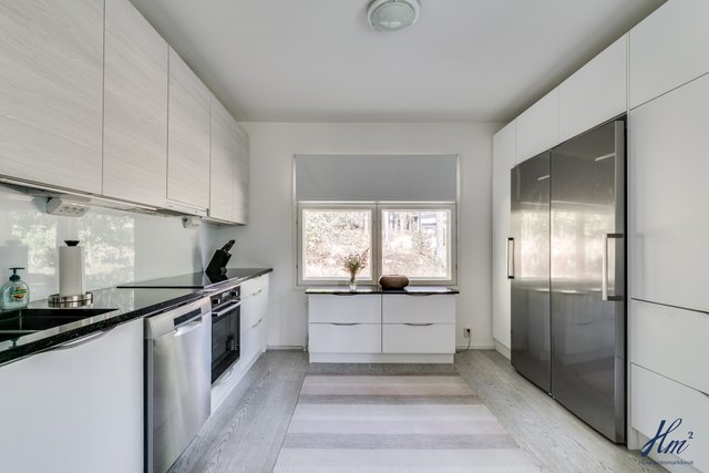 2022 Keittiö remontoitu (Unique Home), Bosch-kodinkoneet, Nero Assoluto mustat graniittitasot, katto+seinät maalattu, parkettilattia uusittu, liesituulettimen huippuimuri katolle asennettu