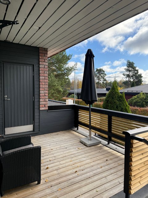 - Talon edustalla on terassi. Terassi on laudoitettu kesällä 2023.