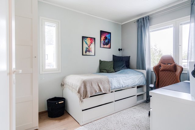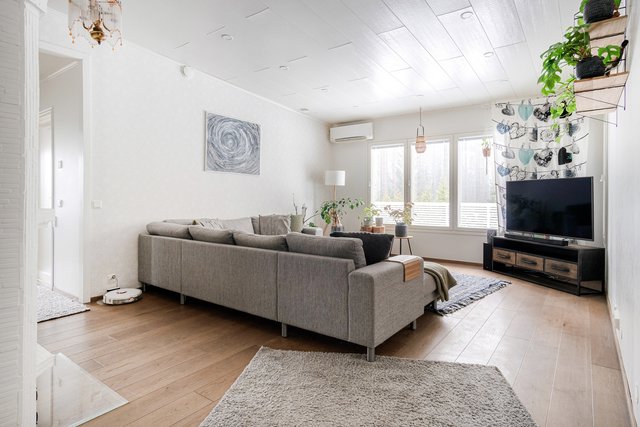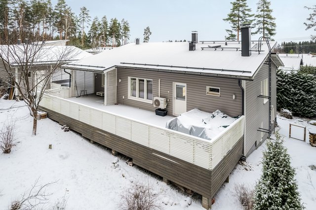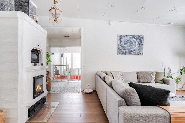 Valmistunut 2008, hoidettu ja hellästi pidetty. Kokkailun halua kiihdyttää kaunis 2017 uusittu keittiö, jossa runsaasti kaappi- ja tasotilaa. Yläkerrassa avara olohuone sekä kolme makuuhuonetta. Olohuoneessa varaava takka-leivinuuni sekä ilmalämpöpumppu. Päämakuuhuoneen yhteydessä oma wc sekä vaatehuone. Kodinhoitohuoneeseen pääset suoraan suurelta takaterassilta, kätevää kuraisten tassujen ja tenavien kanssa. Alakerrassa omalla sisäänkäynnillä 60 m2 tila, jota voit käyttää vierashuoneena, etätyötilana tai vastaanottotilana. Mitä käyttöä keksitkään. Alakerran tunnelmanluojana kamiina ja lisänä runsaasti varastotilaa.
