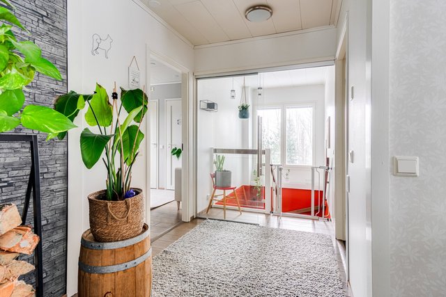 Valtavasti valoa, asumisen iloa ja arjen sujuvuutta tarjoaa tämä talo. Tarvasmäessä, omassa rauhassaan metsään