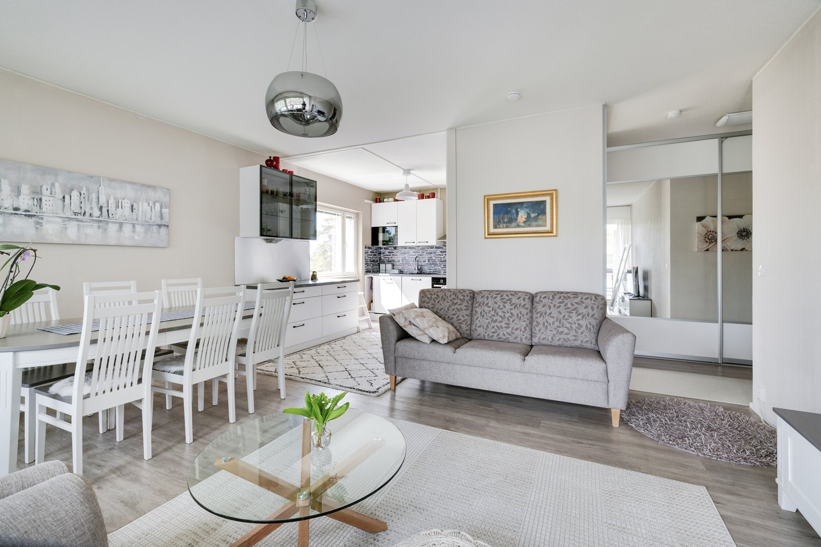 Asunnon moderni keittiö on remontoitu vuonna 2020 ja se on varustettu nykyaikaisilla laitteilla, kuten induktioliedellä ja integroidulla astianpesukoneella. Kylpyhuone on uusittu vuonna 2017 ja tarjoaa tyylikkään tilan rentoutumiselle. Kaksi makuuhuonetta tarjoavat mukavasti tilaa perheelle tai työhuoneelle, ja lasitettu parveke toimii erinomaisena lisätilana.