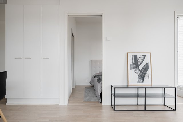 - Makuuhuoneen lattia on parkettia, seinät maalatut. Kiintokaapistoa.