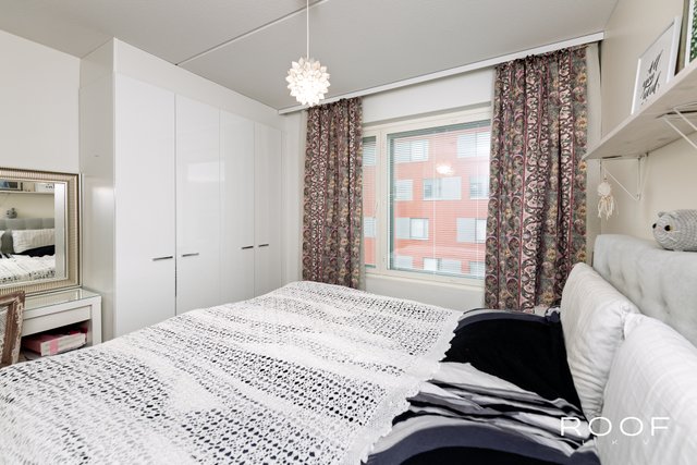 - Kaapistot, yhdessä makuuhuoneessa vaatehuone, lattia laminaattia, seinät maalattu.