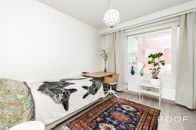 - Lattia laminaattia, seinät maalattu, käynti parvekkeelle.