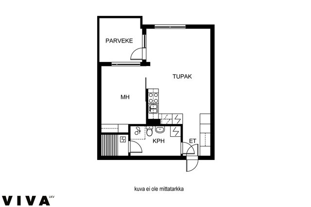 - Ei tarkistusmitattu. Pinta-ala voi siis olla edellä mainittua pienempi tai suurempi.