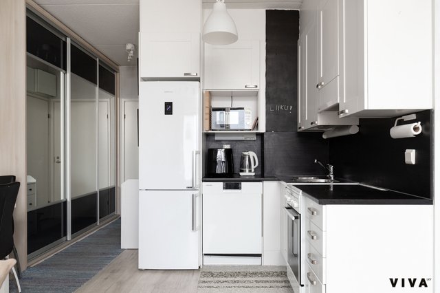 Kulkuyhteydet ovat loistava linja-autolla, metrolla tai sitten omalla autolla. Meren rannalle kävelet täältä muutamassa minuutissa. Ravintoloita ja muut Herttoniemen palvelut ovat vieressä.