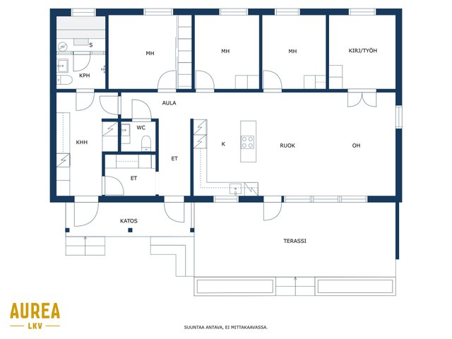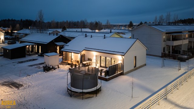 Tämä koti tarjoaa käytännöllisen pohjaratkaisun, jossa yksi taso mahdollistaa helpon liikkumisen ja sujuvan arjen. Suuret ikkunat tuovat runsaasti luonnonvaloa, ja avara olohuone-keittiö-yhdistelmä kutsuu viihtymään perheen ja ystävien kanssa.