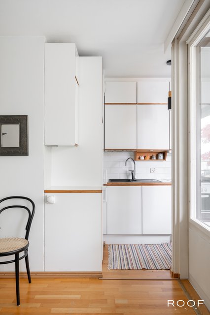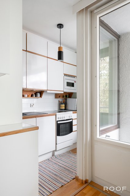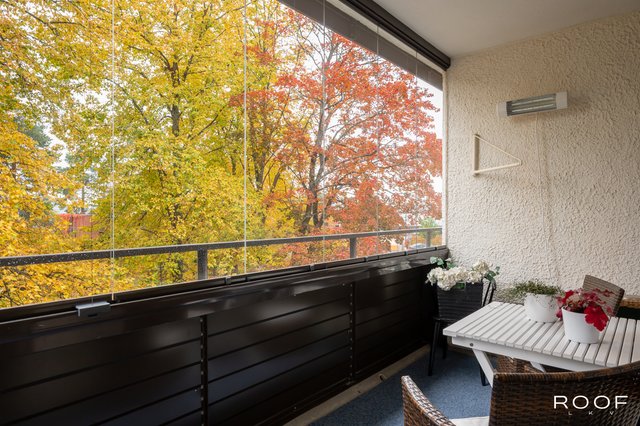 Asunnon lasitettu parveke tuo lisämukavuutta ja mahdollisuuden nauttia ulkoilmasta ympäri vuoden. Keittiö on varustettu modernisti, ja kylpyhuoneessa on lattialämmitys, joka tuo arkeen ripauksen ylellisyyttä. Parkettilattiat ja maalatut seinät luovat valoisat ja raikkaat puitteet sisustamiselle.