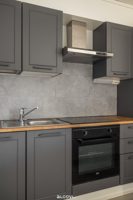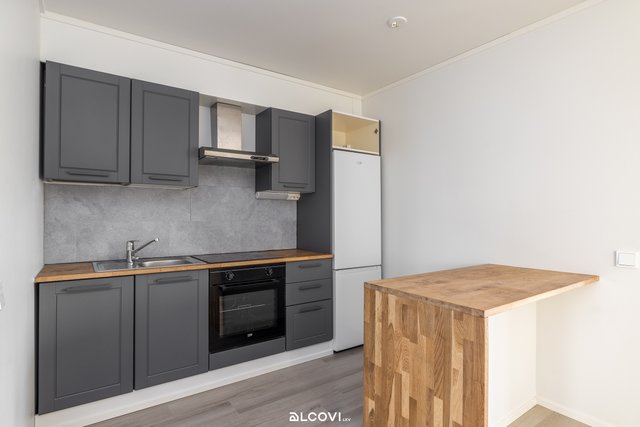 - Keittiön varustukseen kuuluu induktioliesitaso, kalusteuuni, astianpesukone, liesituuletin ja jääkaappi-pakastin. Lattiat ovat vinyyliä, seinät maalattua levyä. Saareke, jossa tilaa ruokailuun.