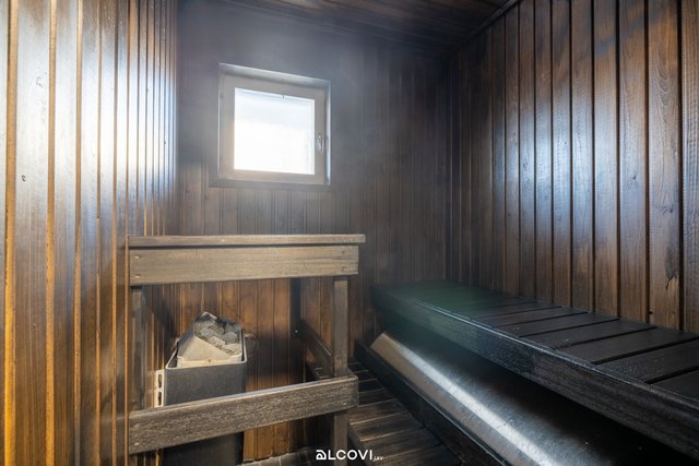 - Sähkökiuas. Saunan lattia on laattaa, seinät ja katto paneloitu. Ikkuna ulos. Kiukaan uusiminen edessä