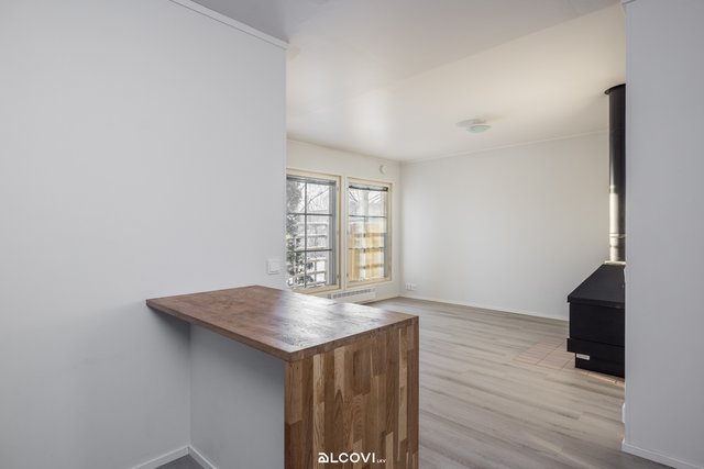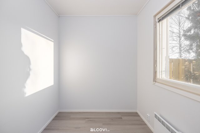 - Pinta-alaa ei ole tarkistusmitattu. Pinta-alat saattavat tämän ikäisissä kohteissa (rekisteröity ennen 01.01.1992) poiketa olennaisestikin asuinrakennusten nykyisten mittaustapojen ja standardien (SFS 5139) mukaan laskettavasta asuintilojen pinta-alasta. Pinta-ala voi siis olla edellä mainittua pienempi tai suurempi. Pienempi huone (olohuoneen yhteydessä) on kooltaan noin 5 m2, eikä näin ollen ole virallisesti asuinhuone.
