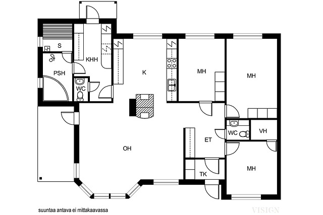 k, oh, 3mh, khh, psh, s, 2 wc, vh, lämmin at, kattilahuone