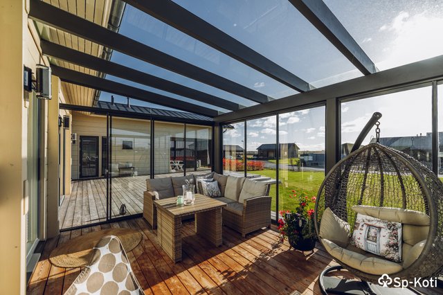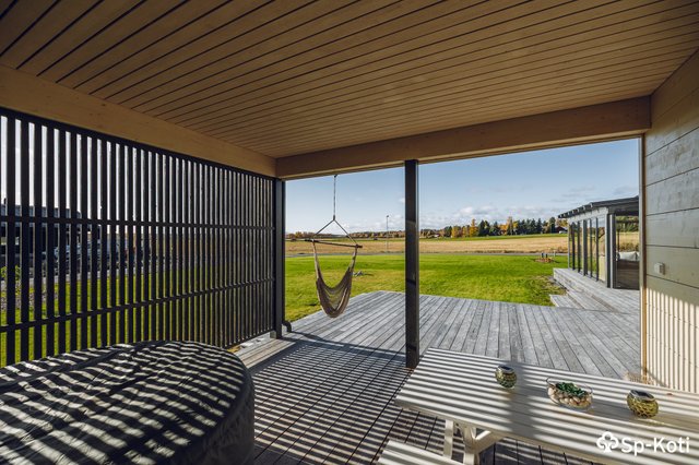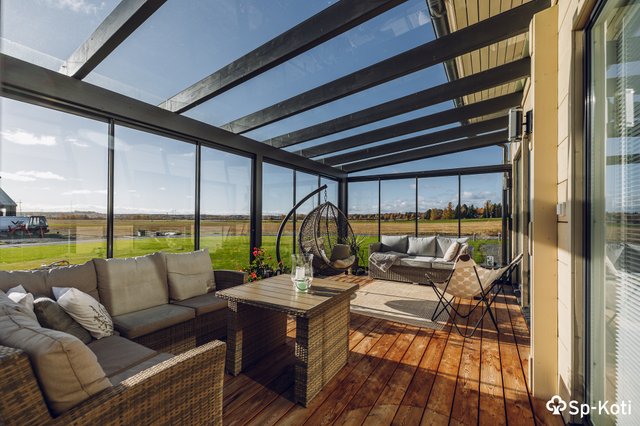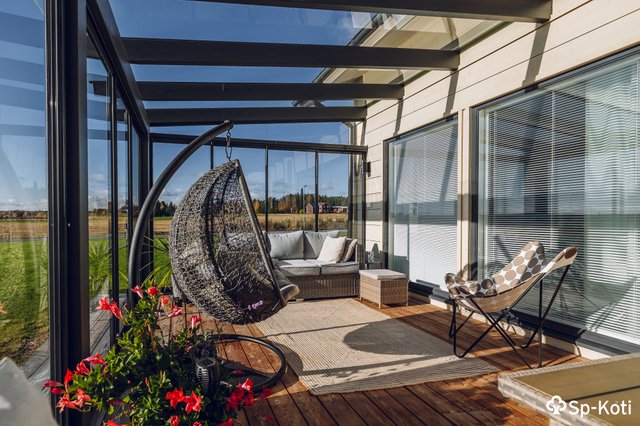 - Takaterassilla reilusti avointa terassia. Lisäksi suojaisa katettu tila, jossa tällä hetkellä ulkoporeamme ja tämän lisäksi vielä erillinen lasitettu terassi.