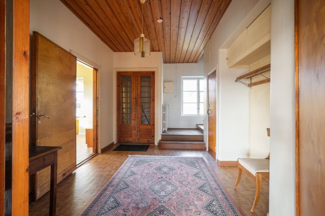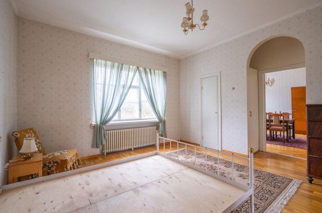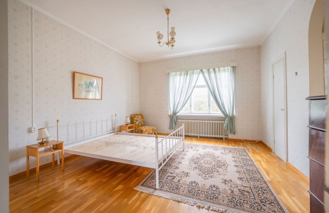 Tämä on ehdottomasti mahdollisuuksien paikka. Tilan kartanotyylinen päärakennus on 1930-luvulta. Tämä kaksikerroksinen koti on rakennettu tiilestä. Talon ensimmäisessä kerroksessa on näyttävät edustustilat. Talossa on nykymuodossaan viisi makuuhuonetta. Koko talon alla on kellari, jossa on m.m. sauna ja pesutiloja, autotalli sekä oleskelutiloja.