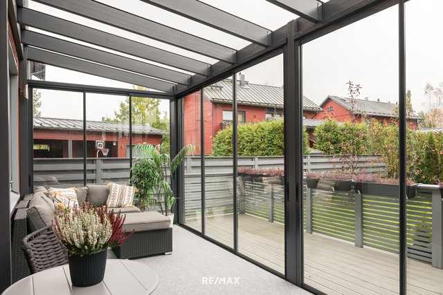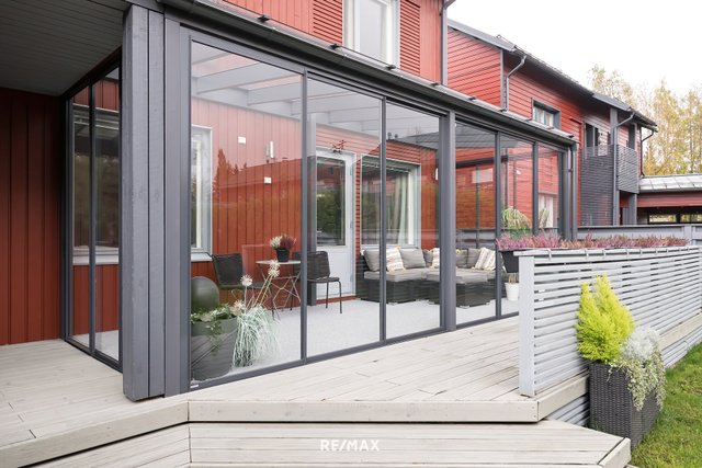 - Lasitettu terassi, johon käynti olohuoneesta.