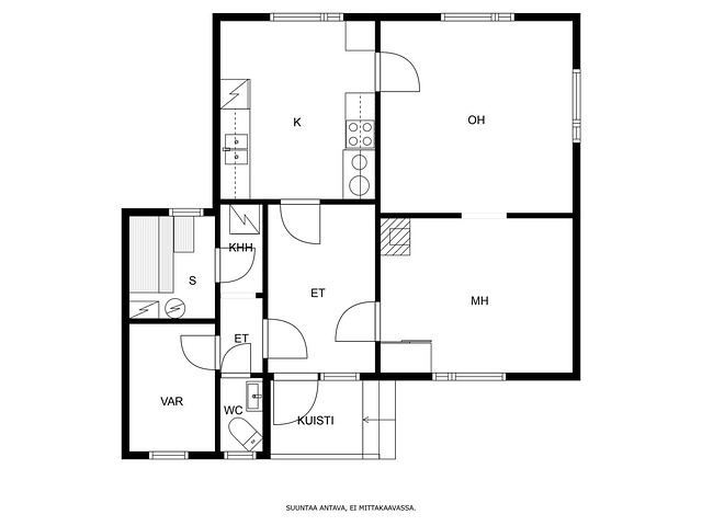 - Rakennusluvan mukaan Kerrosala 75 m2. Edellä mainittu pinta-ala saattaa tämän ikäisessä kohteessa poiketa olennaisestikin nykyisen ja rakentamisaikaisen mittaustapojen ja standardien mukaan laskettavasta pinta-alasta. Todellinen pinta-ala voi siis olla esitteessä mainittua pienempi tai suurempi.