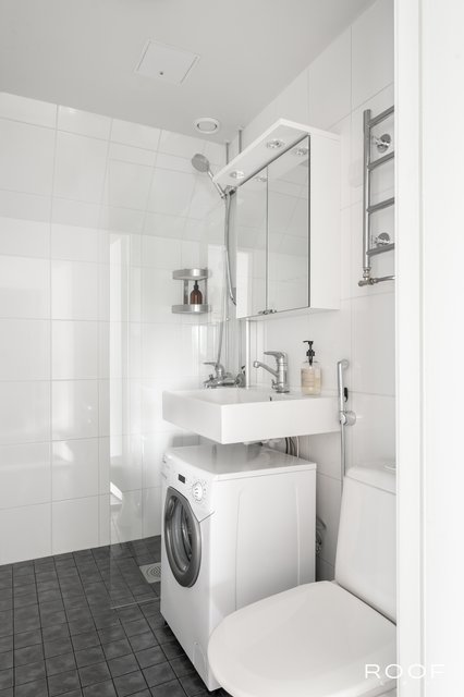 - SEINÄT: Laatta LATTIA: Laatta VARUSTELU: Suihku, suihkuseinä, Wc-istuin, pesukoneliitäntä, hana, allas, peilikaappi, lattialämmitys