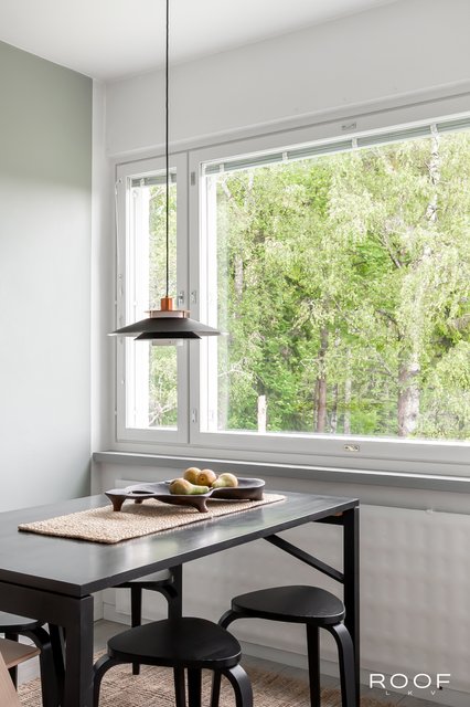 - Kulmahuoneisto, ikkunat kolmeen suuntaan, sisäpihalle, metsään ja kadulle.