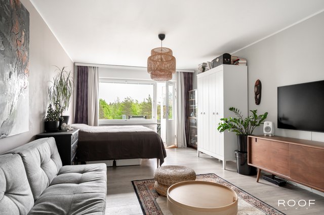 Tämä 54 m² kokoinen viehättävä koti ihastuttaa rauhallisuudellaan, valoisuudellaan ja kodikkuudellaan. Täällä asut kuin omassa lintukodossa, korkeuksissa katselemassa avaria maisemia, joista pääset nauttimaan kolmesta eri ilmansuunnasta avautuvien ikkunoiden ansiosta.