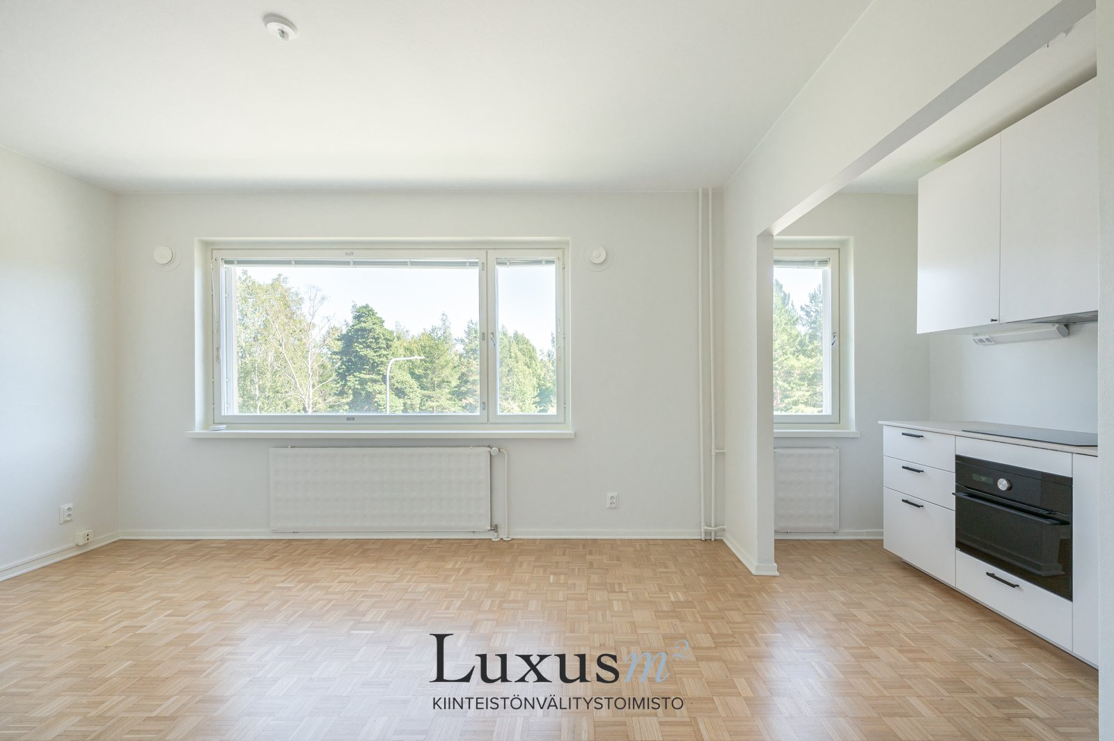 - Varustus: Jääkappipakastin, liesituuletin, liesi, uuni, astianpesukone. Seinät: Maali. Lattiat: Parketti. Työtaso: Laminaatti.