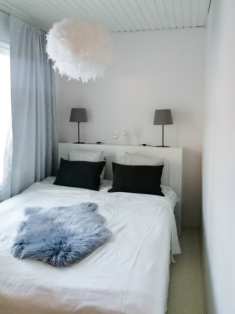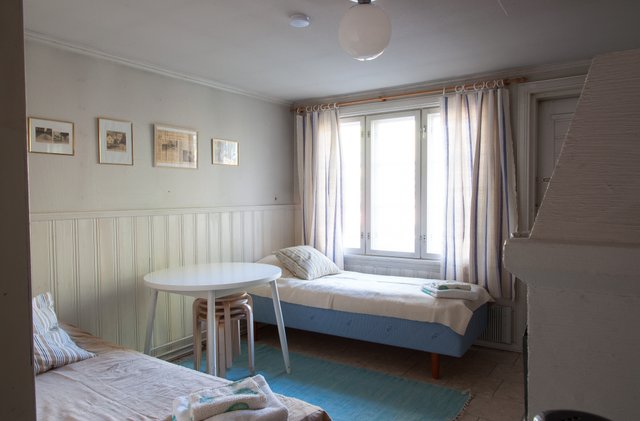 - Seinät maalattu, lattia vaaleaksi vahattu mäntylattia.