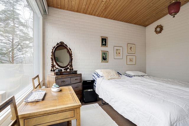 - Makuuhuoneissa osin tiiliseinää ja osin maalattu, toisessa makuuhuoneessa viistokatto.