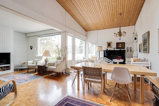 - Olohuoneessa viistokatto sekä kattoikkuna, seinät tiiltä.