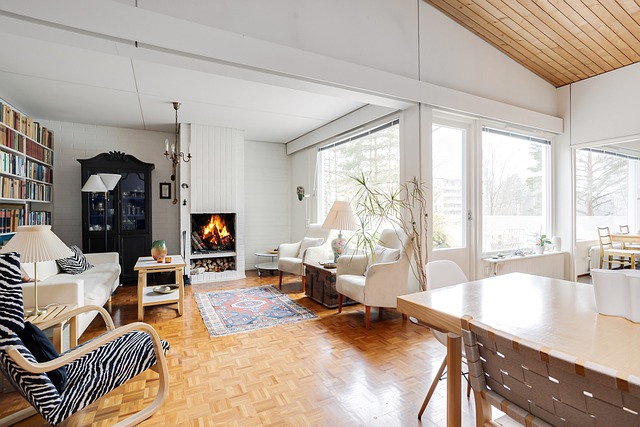 - Takkahuoneen lattia parkettia, seinät tiiltä.