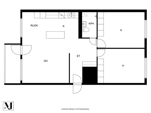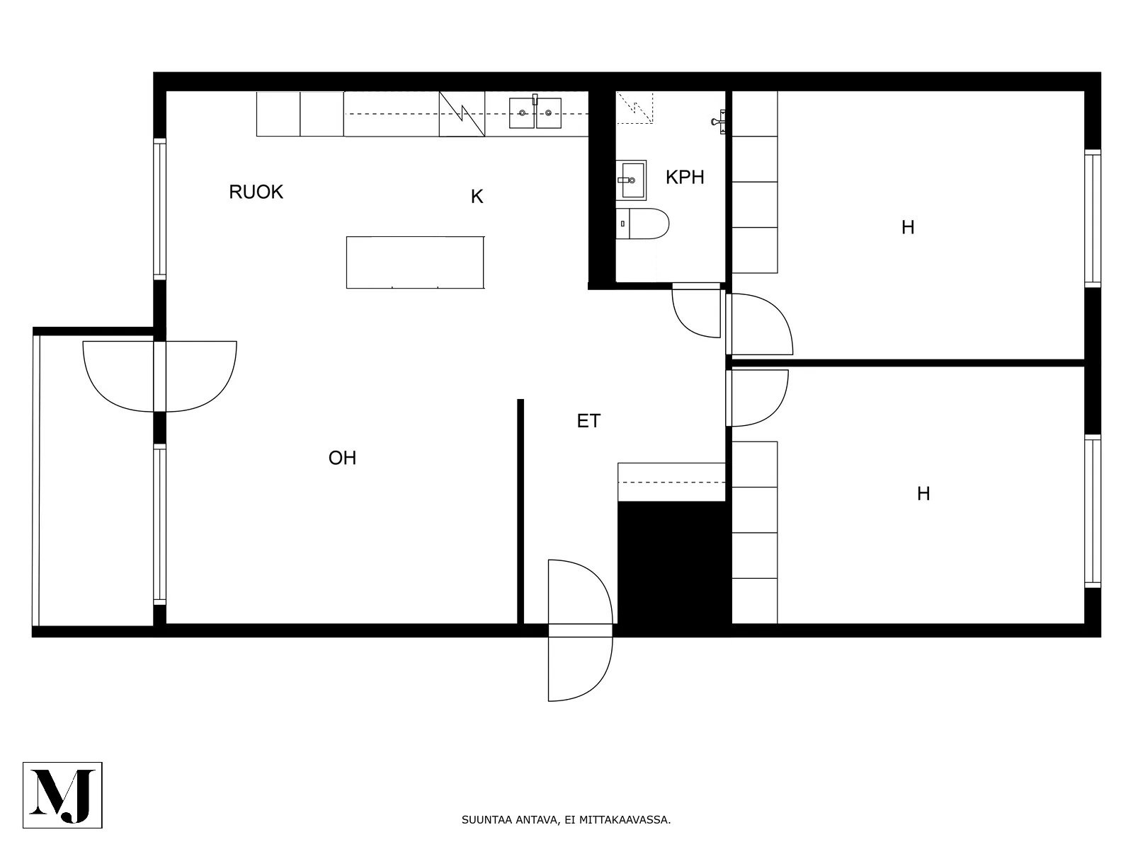 - Ei tarkistusmitattu. Pinta-alat saattavat tämän ikäisissä kohteissa (yhtiö rekisteröity ennen 01.01.1992) poiketa olennaisestikin asuinrakennusten nykyisten mittaustapojen ja standardien (SFS 5139) mukaan laskettavasta asuintilojen pinta-alasta. Pinta-ala voi siis olla edellä mainittua pienempi tai suurempi.