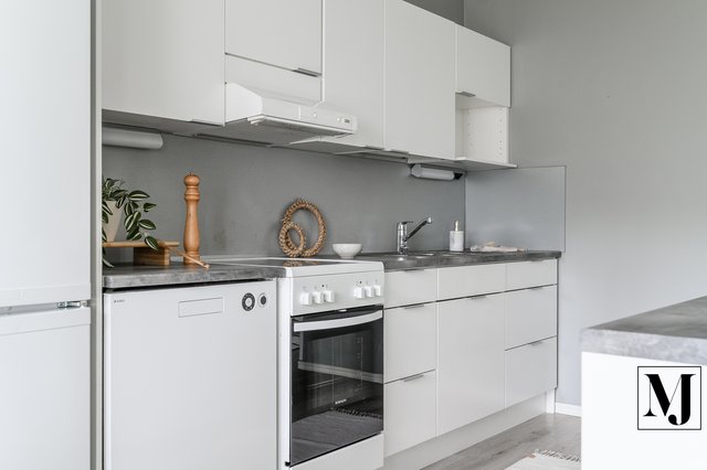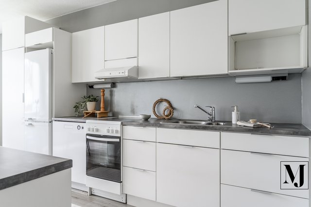 - Jääkaappipakastin, astianpesukone, keittiösaareke, ja liesituuletin
