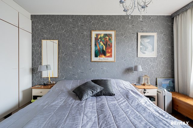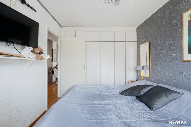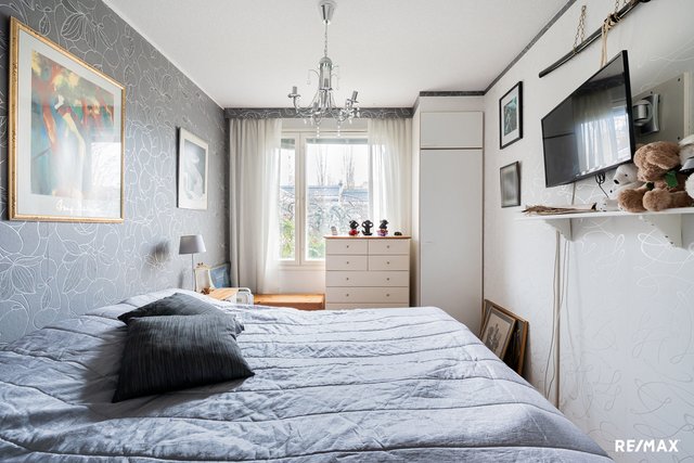 - Makuuhuoneessa lattiassa parketti ja seinissä tapetit. Säilytystilaa vaatekaapistossa.
