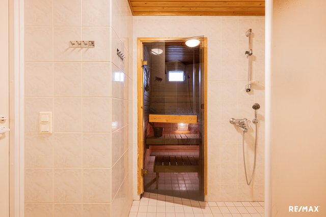 Tilavassa olohuoneessa on luonnonvaloa runsaasti, ja se yhdistyy luontevasti keittiöön sekä suojaisalle omalle terassipihalle – loistava paikka nauttia aamukahvit tai viettää iltaa rennosti. Makuuhuoneessa on hyvin säilytystilaa, ja oma sauna sekä moderni, laatoitettu kylpyhuone tuovat arkeen ripauksen luksusta.