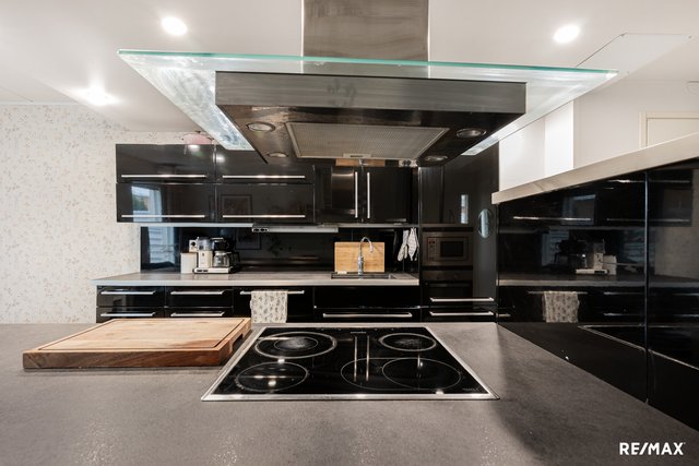 - Jääkaappipakastin, uuni, mikroaaltouuni, liesi, liesituuletin, astianpesukone, ja keittiösaareke