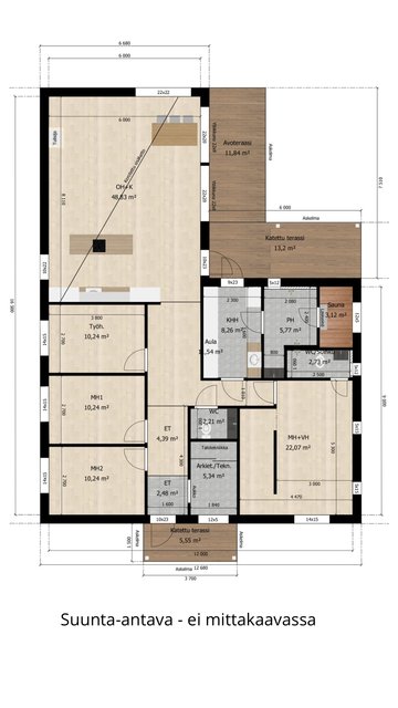 - Pinta-ala ei ole tarkistusmitattu ja todellinen pinta-ala voi olla suurempi tai pienempi, kuin ilmoitettu