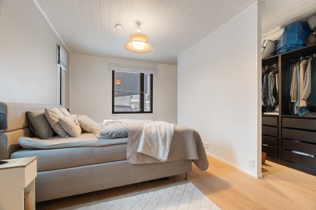 Stiligt kök i svart och trä. Rostfria kyl och frysskåp. Integrerade köksmaskiner. Stor köksö som delar av köket med vardasgrummet. Huset har fyra rymliga sovrum. Två separata wc samt ett rymligt klädvårdsrum med mycket skåputrymme. Rymlig duschrum med två duchar, I duschrummet även bastu med glasvägg.