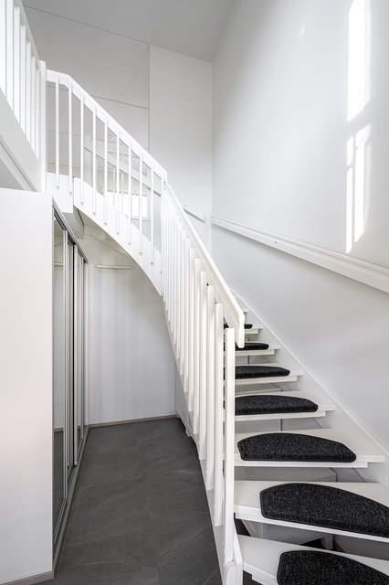 - Alakerran aulassa laattalattia, seinät maalattu, alkuperäiset kaapistot, joiden lisäksi portaikon alle on lisätty vaatekaappeja.