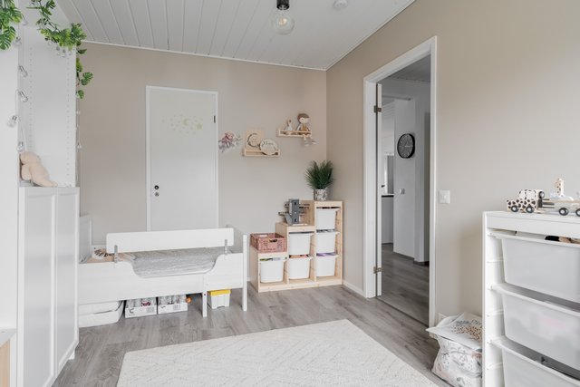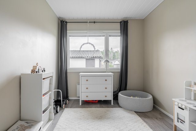 Se on tällä hetkellä käytössä perheen pienimmän makuuhuoneena, mutta toimii yhtä hyvin työhuoneena tai walk-in-closetina.