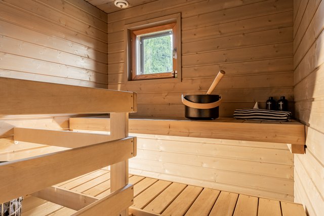 Saunassa sähkökiuas ja ikkuna, kuten pitääkin.