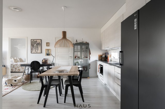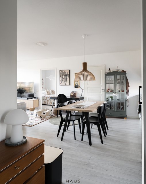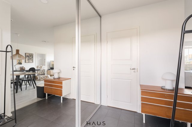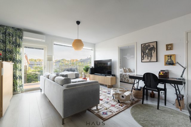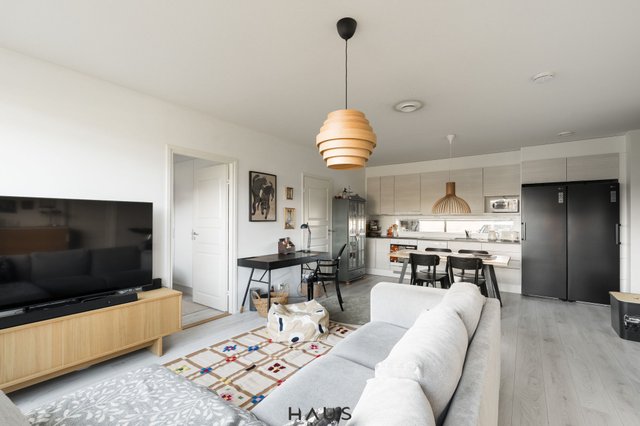 Asunnossa on kaksi hyvänkokoista makuuhuonetta sekä avara olohuone–keittiö-yhdistelmä, joka luo tilan tuntua ja kutsuu viihtymään. Moderni keittiö sulautuu saumattomasti olohuoneeseen – täydellinen ratkaisu niin arjen sujuvuuteen kuin yhdessäoloon. Yhdistetty kylpyhuone ja kodinhoitotila on suunniteltu käytännöllisesti, ja kaksi wc:tä tuovat lisämukavuutta arkeen.